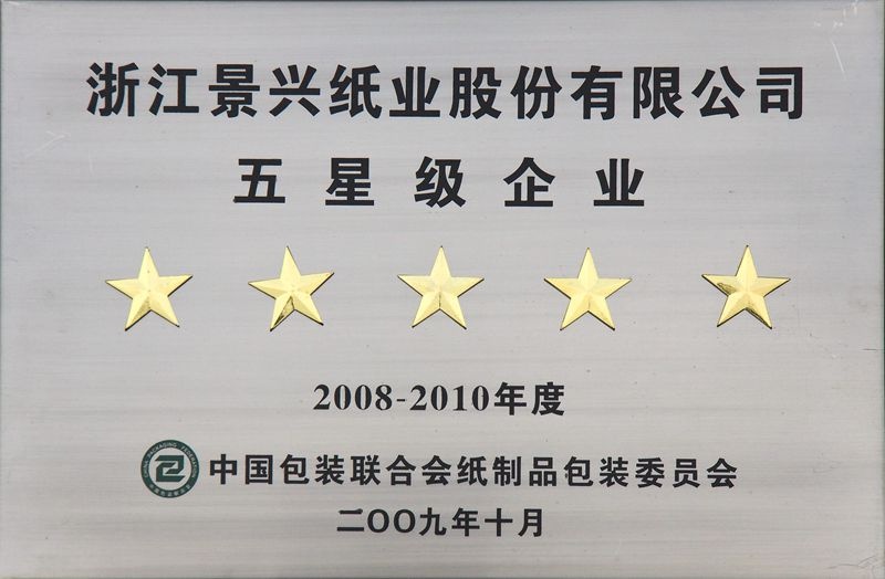 | 2008. | 09. | 景兴纸业被全国工商联纸业商会评为“中华蔡伦奖”杰出企业奖;同年12月,在纪念改革开放30年民营企业系列成就颁奖典礼上,景兴纸业荣获“最具成长性民营企业”荣誉称号。 |